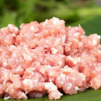 2將蝦仁丁和肉末拌均勻加入海鮮粉、安記雞精、食鹽、雞蛋清調成餡料。