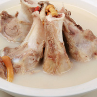 2取500克豬骨湯放入鍋中,加入排骨、生菜、安記排骨味王4克,鮮廚五星雞精2克,鹽3克進(jìn)行煮制。